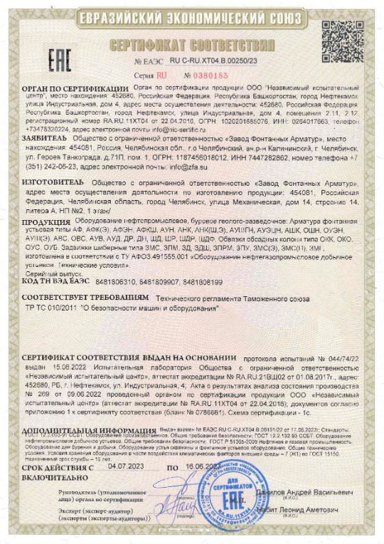 Завод-изготовитель фонтанной арматуры, задвижек ЗМС и компонентов.