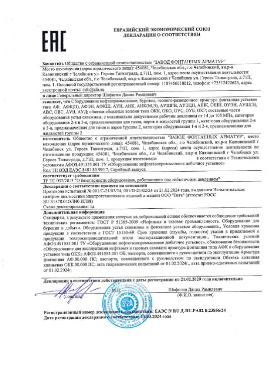 - Арматура фонтанная устьевая типа АФК(Э), АФЭН, АФКШ, АУН, АНК, АНК (Ш, Э), АУШГН, АУЭЦН, АШК, ОШН, ОУЭН, АУШ(Э), АВС, ОВС, АУВ, АУД с условным проходом Ду 50, 65, 80, 100, 150 мм
