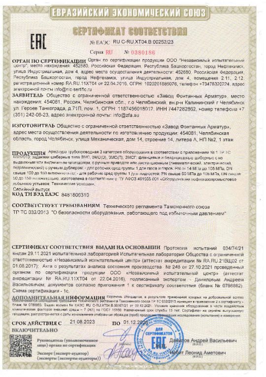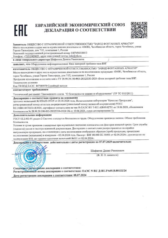 Выпускаемая продукция имеет сертификат соответствия таможенного союза по ТРТС 010/2011, сертификат соответствия таможенного союза по ТРТС 032